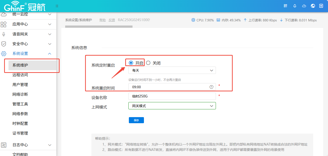 网关如何设置定时重启