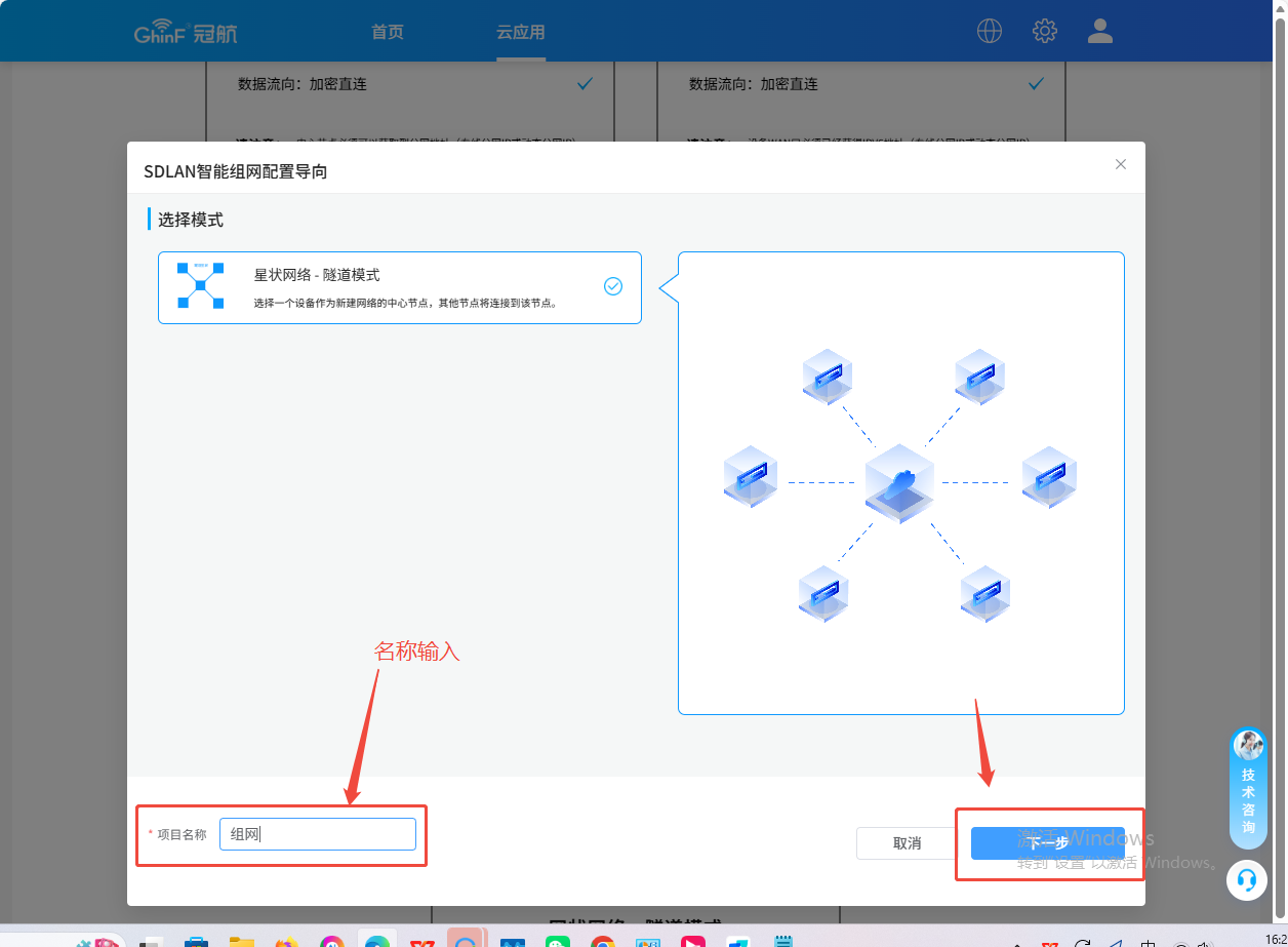 SDLAN星状组网模式组网设置